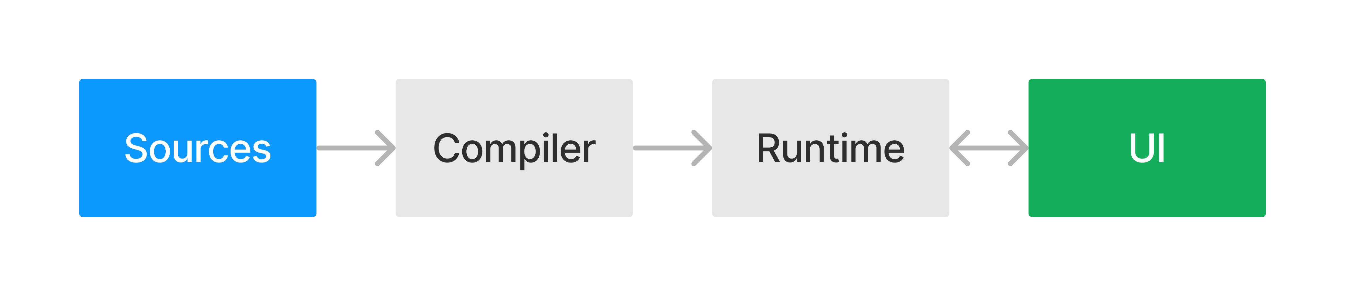 IR(Intermediate Representation)을 조정함으로써 (새 코드를 추가하는 것뿐만 아니라) 소스 코드를 자유롭게 조작할 수 있습니다(코틀린은 멀티플랫폼을 지원합니다). 이는 Compose 컴파일러가 Composable 함수를 런타임에서 지원할 수 있도록 변환하는 능력을 제공합니다.
